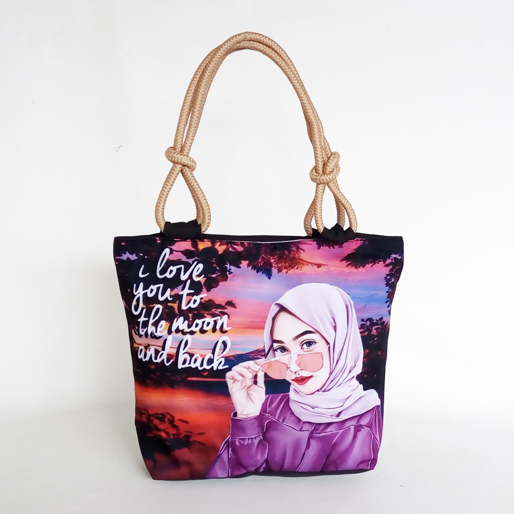 TERMURAH Tas Totebag Tali Sumbu Printing Gambar Hijab Sumber : shopee.co.id